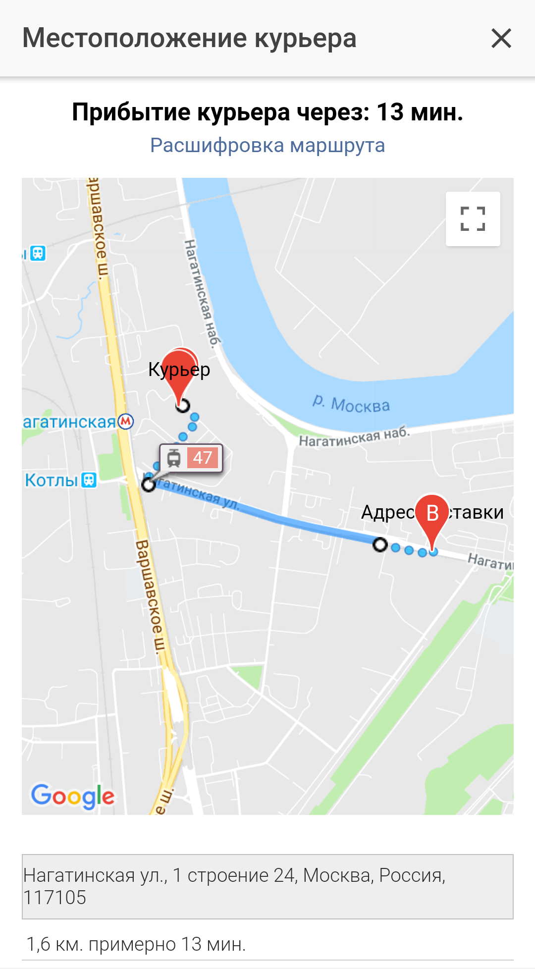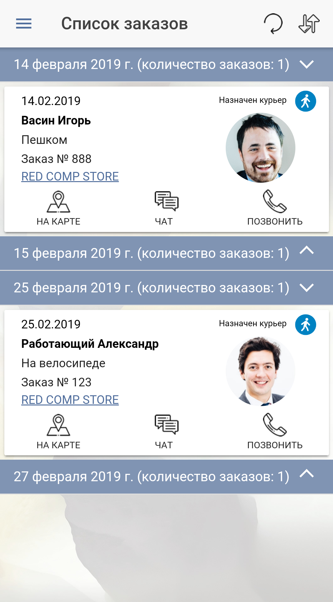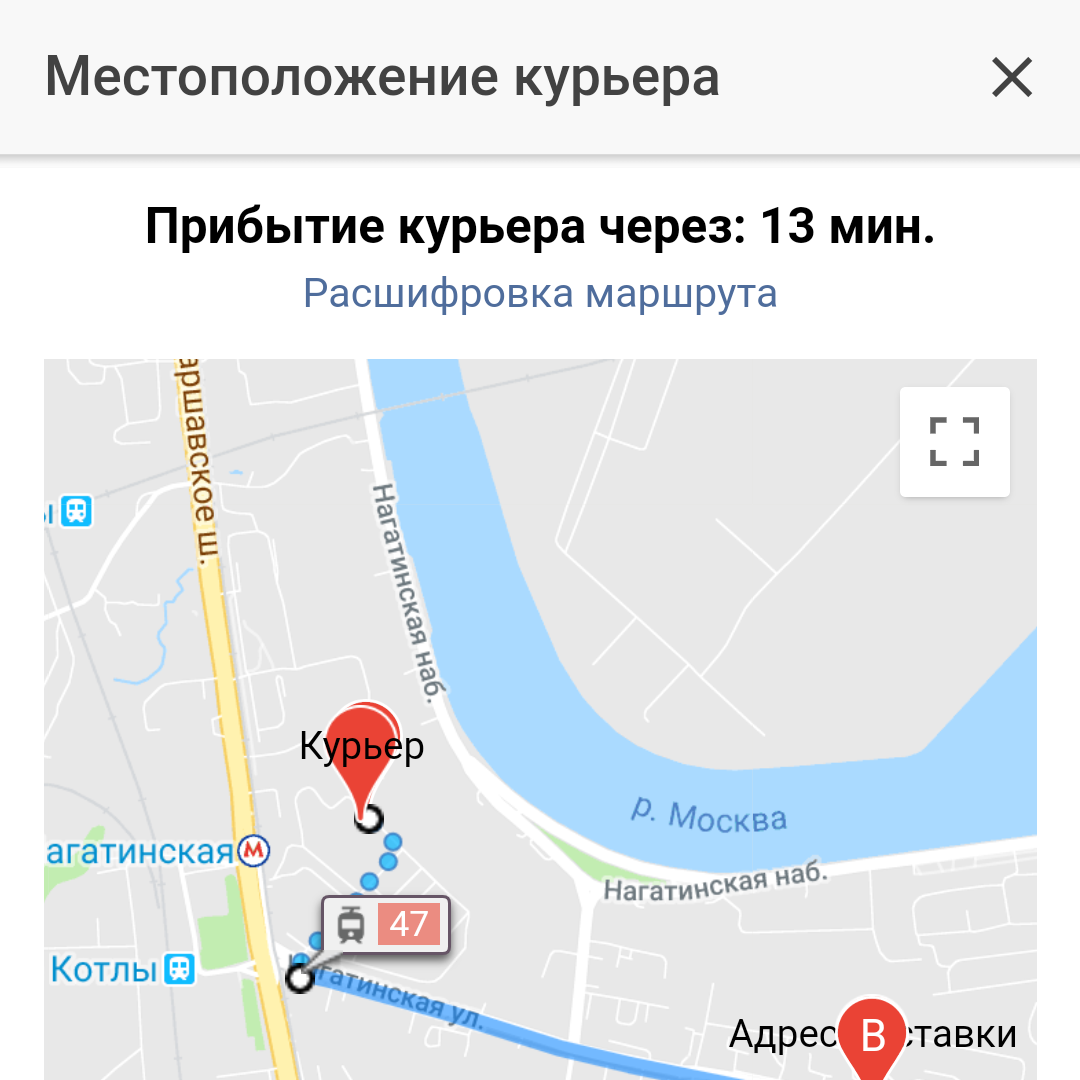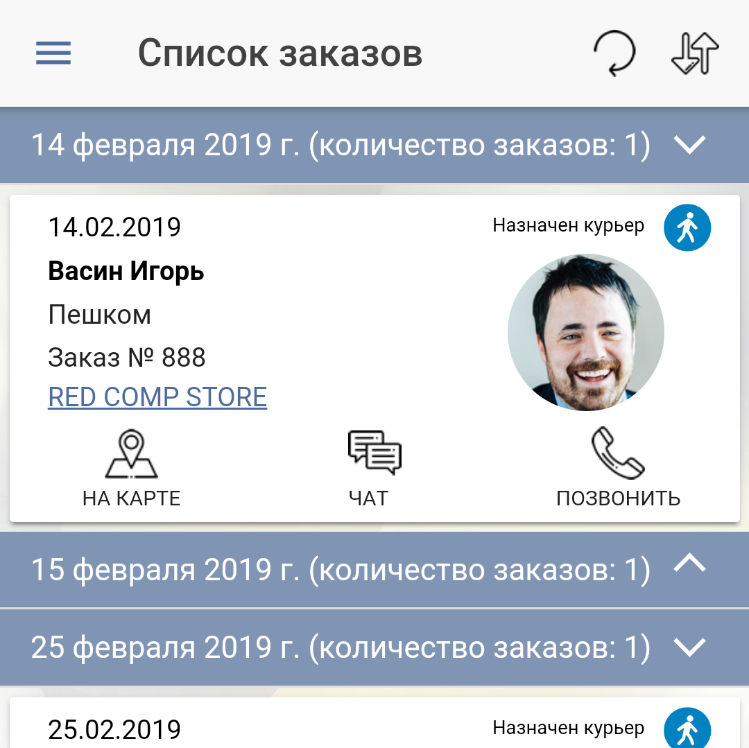 Сделайте работу курьера проще. В одном приложении курьер получит полную информацию по всем своим активным заказам на доставку. Курьер увидит адрес и местоположение клиента на карте, сможет проложить маршрут и выбрать способ передвижения, а также связаться с клиентом через чат, звонком или смс, получать автоматические push-уведомления об изменении статуса заказа и вносить комментарии для Вас.