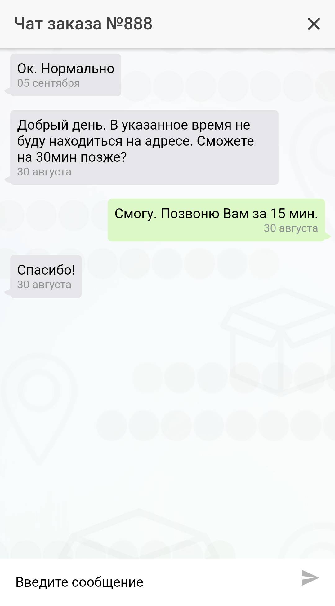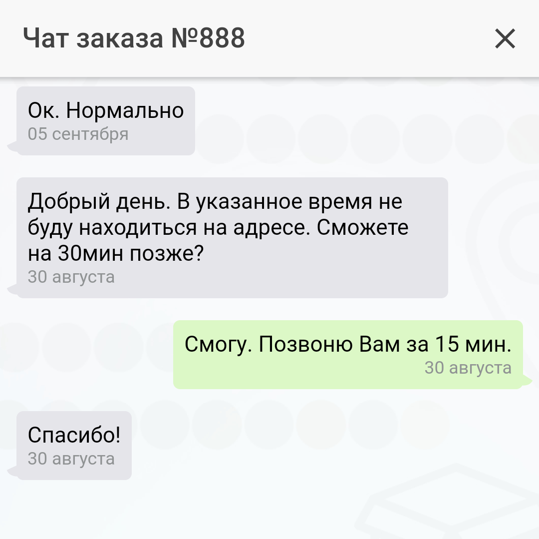 Упростите и удешевите общение с клиентом. Экономьте на смс, сервис будет автоматически посылать клиентам push-уведомления об изменении статуса заказа и этапах его выполнения. Дайте клиентам и курьерам возможность общаться между собой без Вашего участия через чат, звонками и смс в приложении.