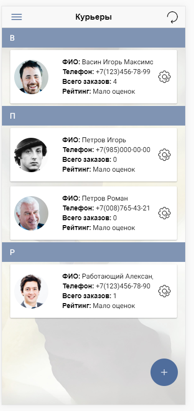 Ищите соискателей на должность курьера в приложении для администратора. Сервис собирает заявки на должность курьера и помещает их в базу анкет.